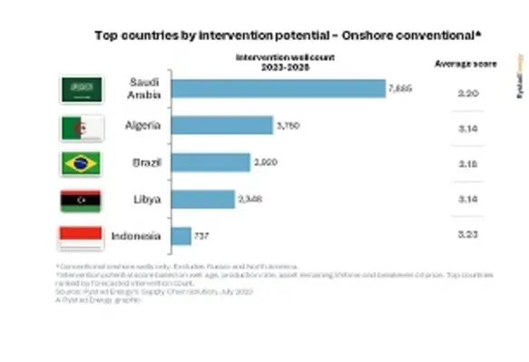 Spending on well interventions is projected to jump by almost 20% this year to US$58bn according to research from Rystad Energy, with Saudi Arabia being the top onshore market from 2023-2028
